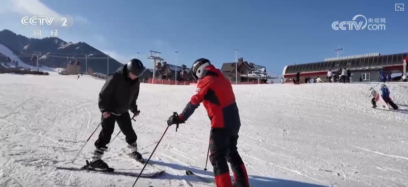 几场降雪过后,丝绸之路山地度假区迎来了大批滑雪爱好者。周末里,平西梁村村民石龙正忙着教雪友滑雪。