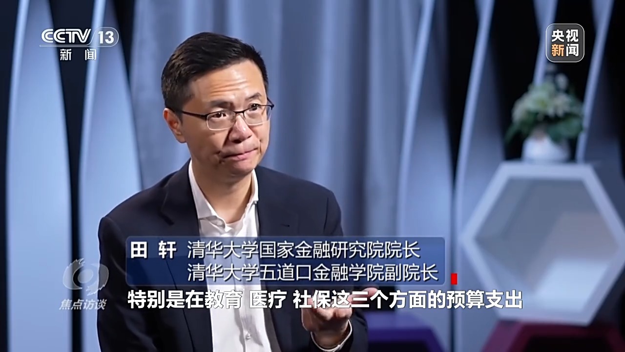 清华大学国家金融研究院院长、清华大学五道口金融学院副院长 田轩:今年前三季度,国家对于民生的支出也有大幅度提升,特别是在教育、医疗、社保这三个方面的预算支出超过了一般公共预算支出的增速,体现了惠民生。