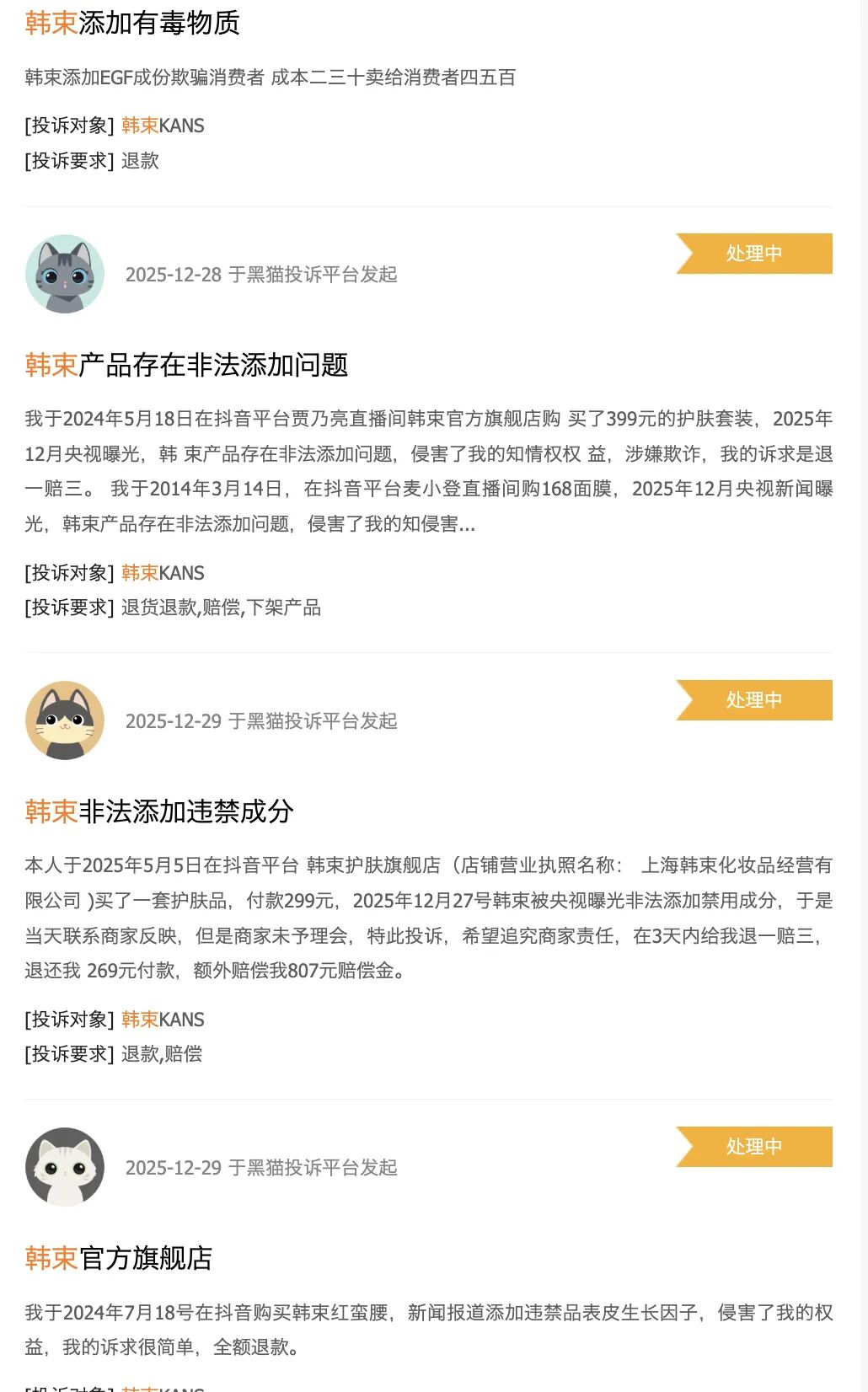 韩束被央视曝光“非法添加”!多名消费者要求退货退款