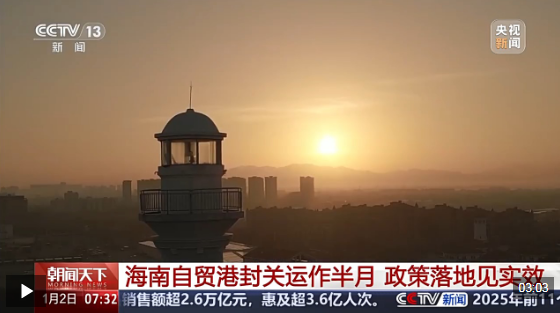 总台记者 金歆竹:在新海港和南港“二线口岸”,迎着朝阳,我身后8号、9号通道是海关监管通道,从这两个通道经过的货车搭载的货物,很多都是享受海南自贸港税收优惠政策的。