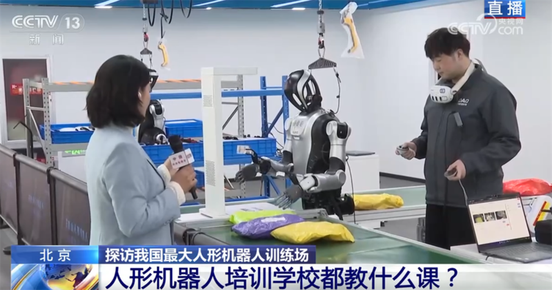 位于北京石景山的这个机器人训练中心整体占地面积超过1万平方米,这么大的空间,为的就是给机器人搭建一个实景训练场景,这里每一处都是1:1还原生产生活中的真实作业场景,涵盖了工业智造、智慧家庭、康养服务等四大类16个细分场景。像记者身边这个机器人,就正在练习物品分拣。