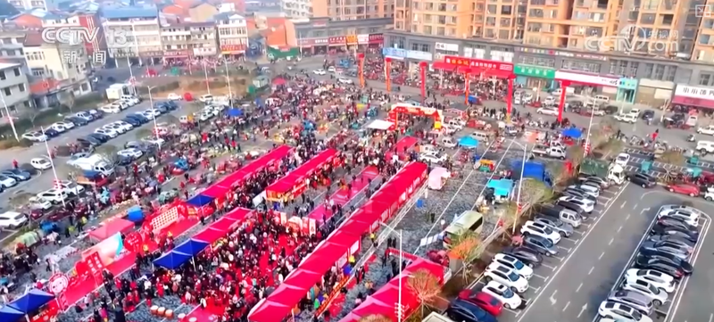 在湖北仙桃古村落,乡亲们围坐共享传统腊八席。在随县厉山镇,热闹的庙会、年货市场也红火开市。