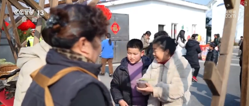 在南京溧水焦赞石村,村民们支起大锅,将糯米、红豆、红枣等食材进行熬煮,一碗碗滚烫的腊八粥免费分发给市民和游客。