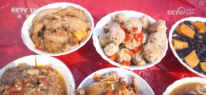 此外,在年货大集上,牛羊猪鸡、新鲜蔬菜等商品,都是农民自产自销的,吸引着市民来这里置办年货,体验“年味”。 腊八宴席共享丰收喜悦