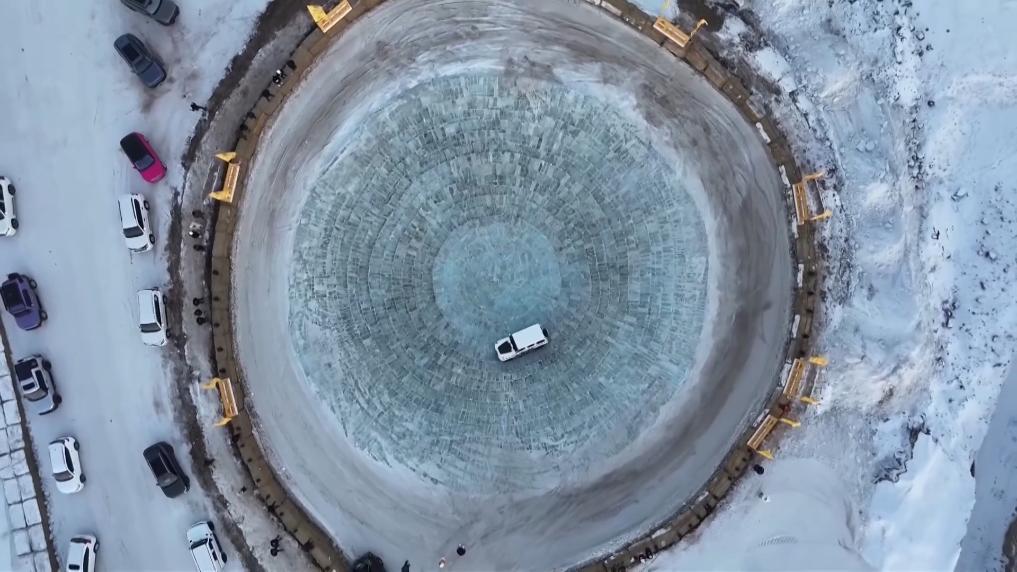 在锡林郭勒盟的锡林湖上,百余座冰雕雪雕将湖畔装点成如梦似幻的冰雪童话世界。