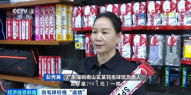 广东深圳南山区某羽毛球馆负责人 彭秀英:我们这里最好卖的一款鹅毛球,去年是298元一筒,现在降价到260元左右。自从球降价以后,场地预订量多了,羽毛球销量也提高了很多。