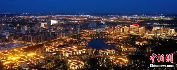 雄安商务服务中心夜景。中新社记者 韩冰 摄