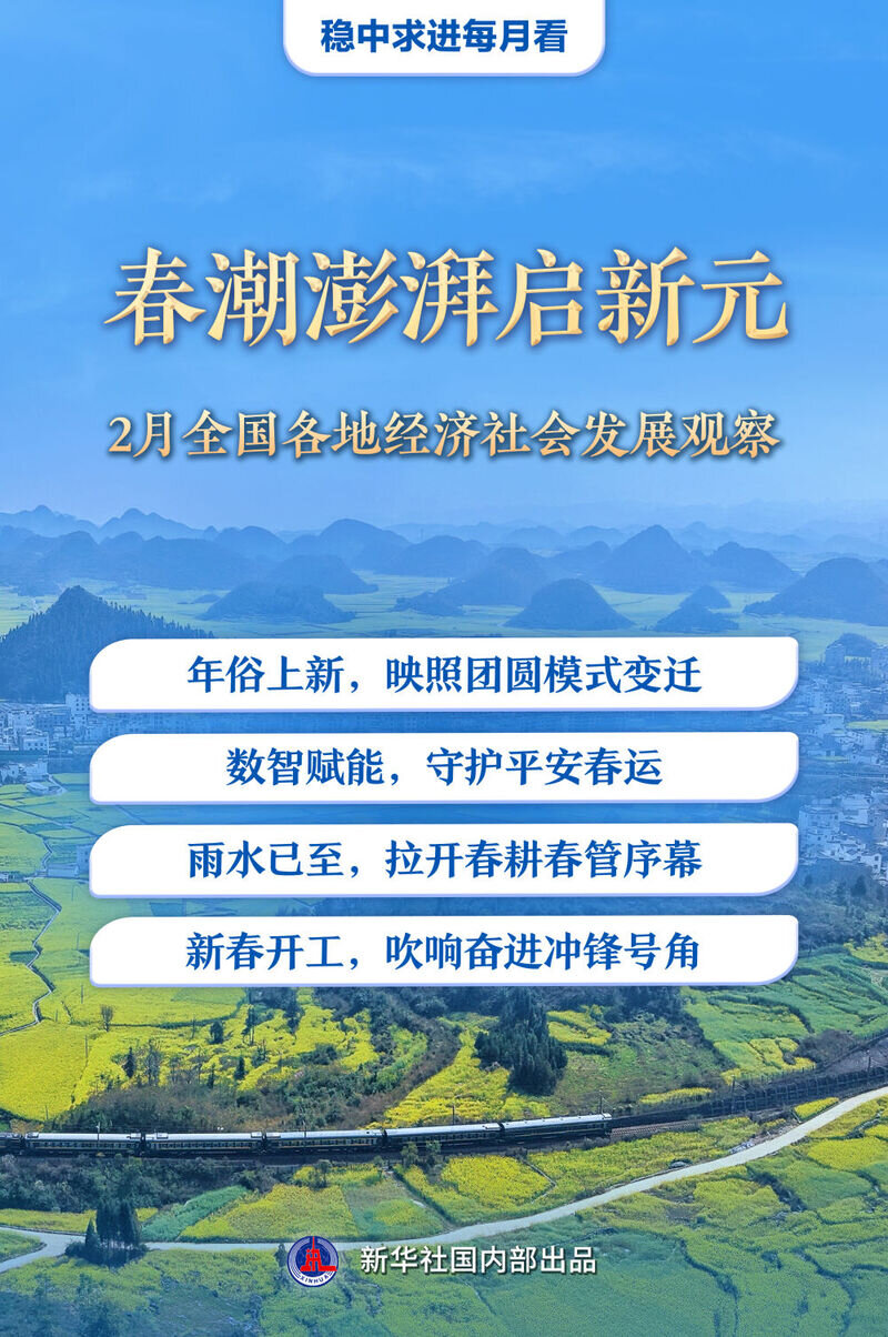 佳节欢腾,“异地过年”成流行趋势;春运大潮,奏响“流动中国”的团圆篇章;雨水时节,春耕春播春管拉开序幕;新春开工,各地吹响奋进
