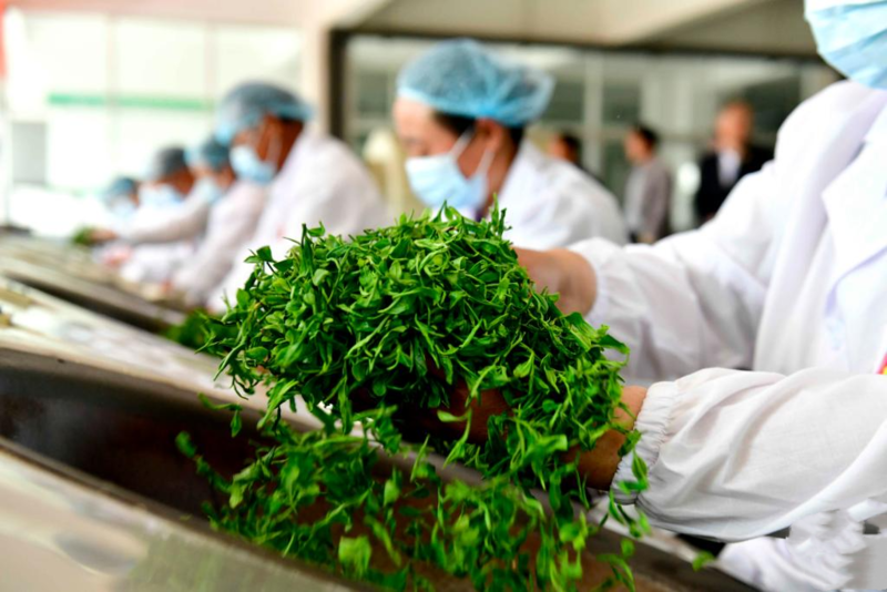 5月1日,参赛选手在山东莒县浮来青旅游度假区炒茶。新华社记者 郭绪雷 摄 当日,山东省日照市莒县举办第九届“浮来青杯”茶行业职