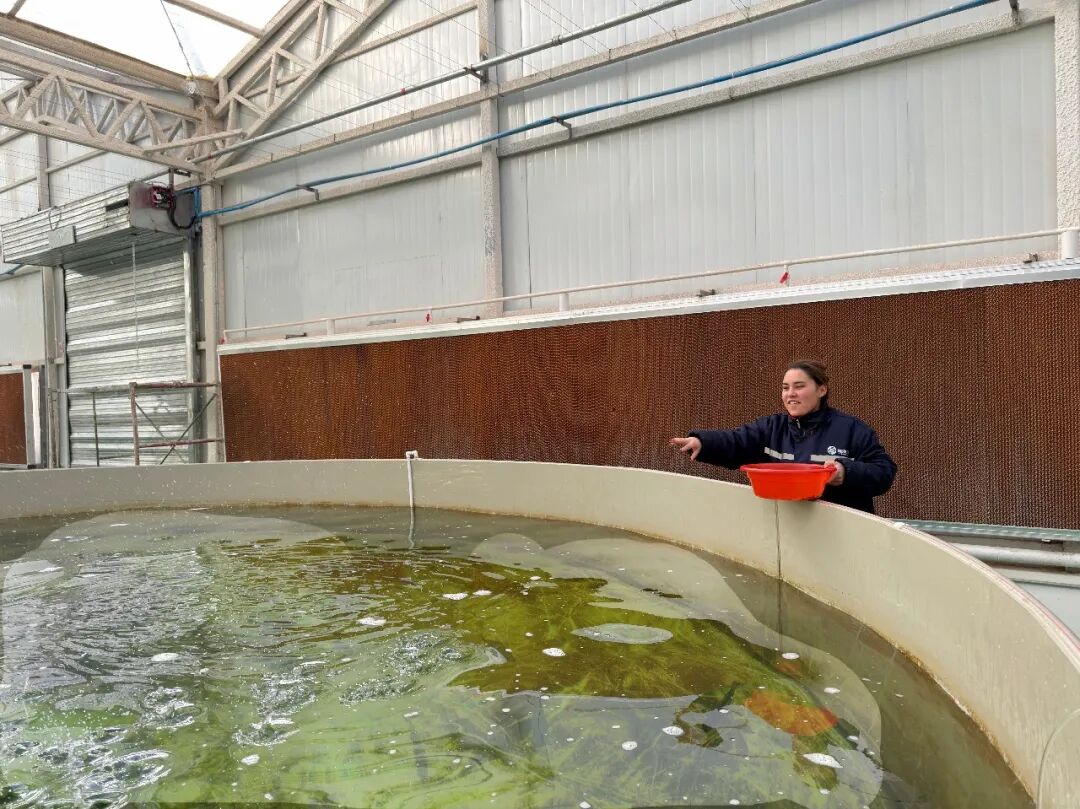 1月12日清晨,在新疆疆渔儿农业科技公司的养殖车间,一池池碧水微波荡漾,中华鲟摆尾游弋,加州鲈成群结队。技术员苏祥生正紧盯着监控