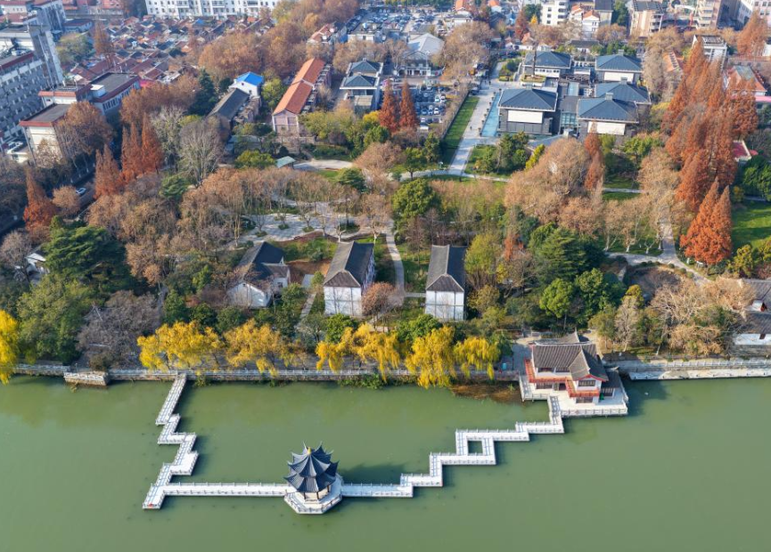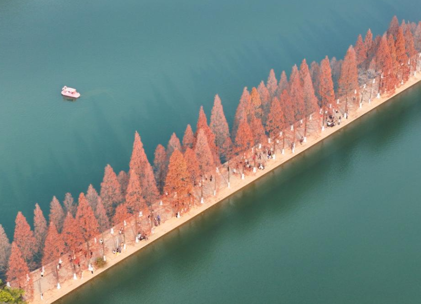 12月16日拍摄的江苏省昆山市开发区景枫公园景观(无人机照片)。 冬日时节,各地美景缤纷如画,吸引众多游客赏景游玩。 新华社发