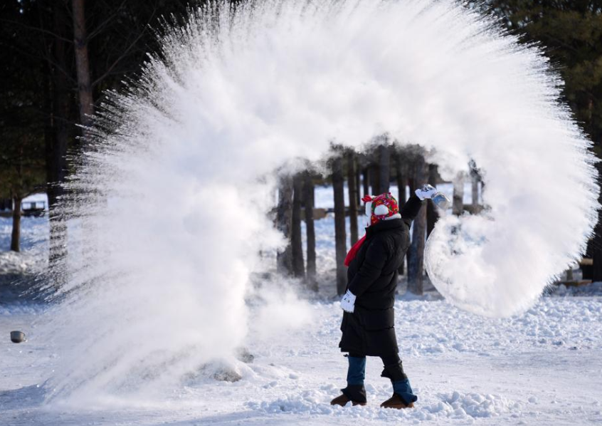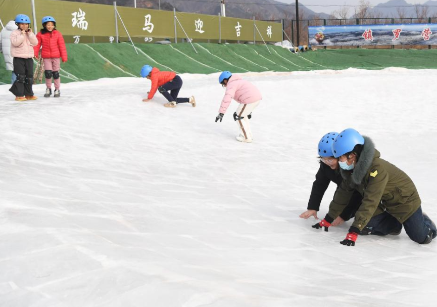 1月28日,在北京市平谷区镇罗营镇湖畔耕读园,游客在活动现场体验“冰坑挑战”。  1月28日,“2026桃醉平谷·镇罗营第二届冰雪嘉年华
