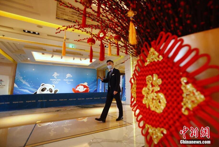 1月14日,工作人员在北京香格里拉饭店大堂内。北京香格里拉饭店是北京市海淀区冬奥住宿保障7家签约饭店之一,赛时,饭店计划接待转播商、市场开发合作伙伴、国家(地区)奥委会和少数新闻媒体。 中新社记者 韩海丹 摄