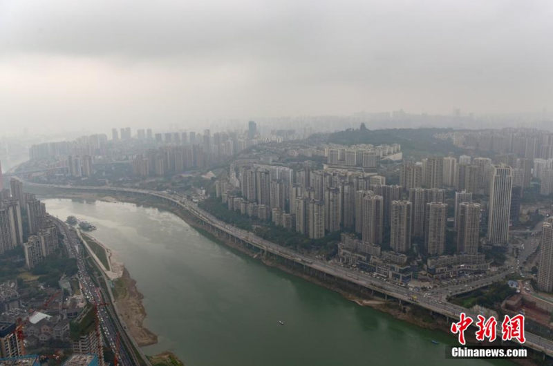 冬日,记者登上建设中的陆海国际中心(重庆100)第72层。300余米的高空视角下,“8D”山城仿佛被缩放成一座巨型魔幻“沙盘”。据悉,总高度458米的陆海国际中心(重庆100)建设高度已超过409米(91层),预计将在5月实现结构封顶。届时,该项目将再度刷新西部直辖市的天际线高度。图为300米高空视角下,嘉陵江穿城而过。 罗永皓 摄