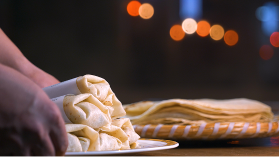 山东人历来敬畏自然,宁愿拙守肥秋。他们把炉膛烧热,让鏊子飞旋。煎饼凝结真情,烧饼寓意富足,单饼巧纳新故。 从蒙山沂水到黄河两岸,从泰山脚下到渤海之滨,圆圆的饼,散发着山东人用汗水洒就、以烟火淬砺的美满滋味。圆饼如镜,映照着山东人勤恳和淳朴的秉性,山东人对饼的偏爱,悠长如歌。