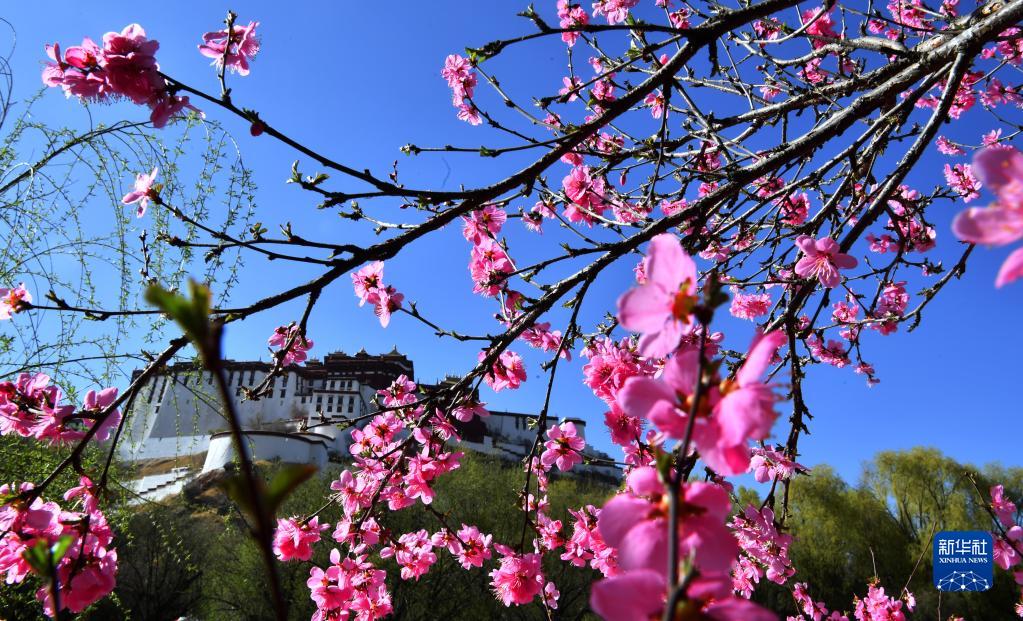 今年3月,拉萨气温较往年偏高,花季提前,布达拉宫周围鲜花盛开。