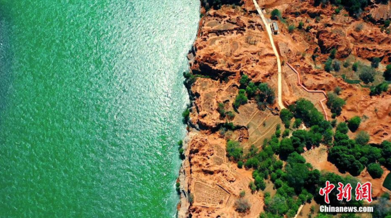 碧绿的黄河水与艳红的丹霞相接,山水一体,阡陌纵横,广阔的田野,美丽的村庄,一切生机勃勃。 李隽/文 赵红莹/图