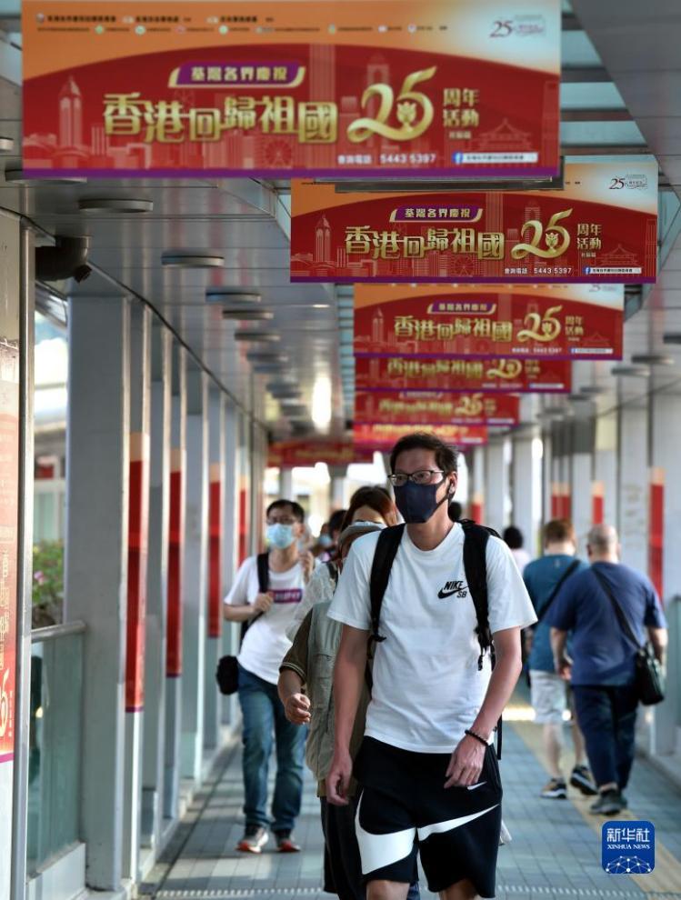 随着香港回归祖国25周年纪念日的临近,香港街头喜庆气氛浓。