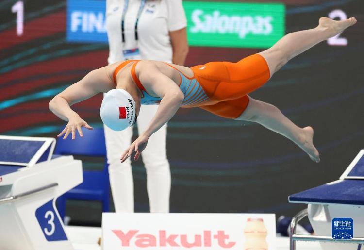 6月23日,张雨霏在比赛中入水。