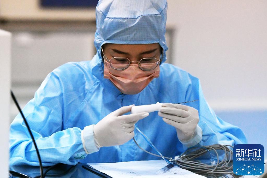 8月5日,在位于山东日照的天一生物医疗科技有限公司,一名员工在检验镁合金冠状支架。