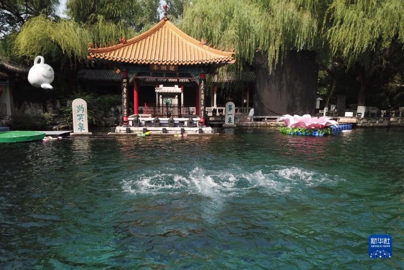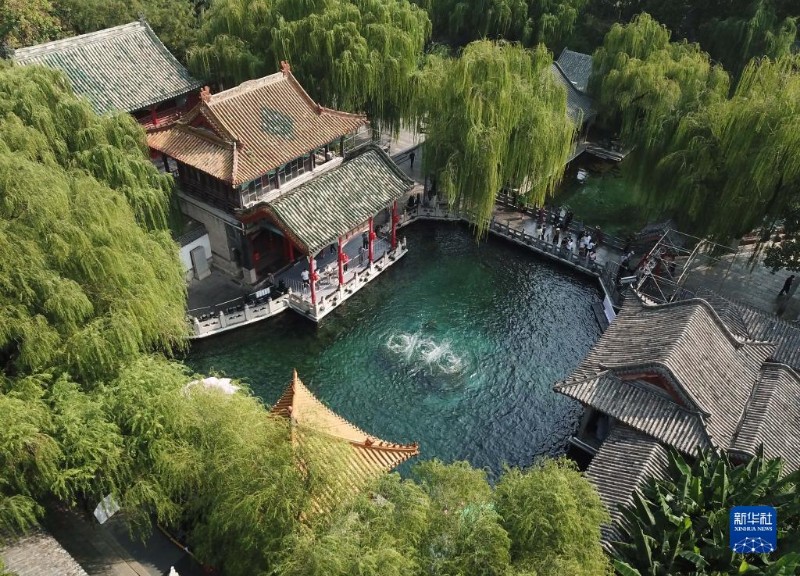 9月6日,济南趵突泉泉水喷涌(无人机照片)。