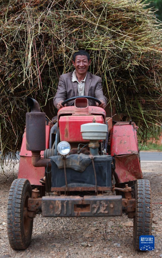 8月30日,在盐源县棉桠镇木邦营村,村民用拖拉机拉回一车苦荞。新华社记者 江宏景 摄