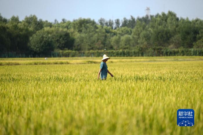 9月14日,农民穿行在佃起村的稻田间。新华社记者 彭子洋 摄