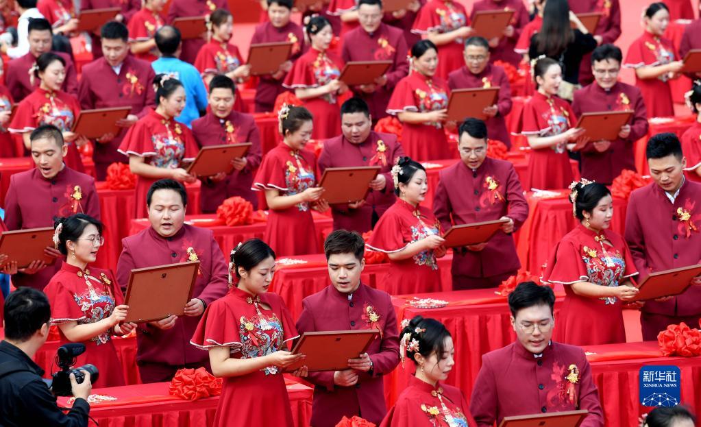 当日,中铁四局在合(肥)新(沂)铁路安徽段建设工地为106对新人举办集体婚礼。据悉,参加集体婚礼的职工大多来自中铁四局建设一线。