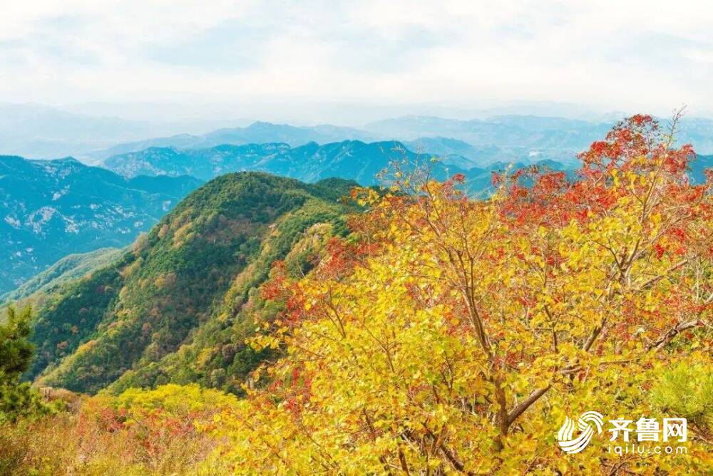 秋天的天是蔚蓝的,秋天的云是洁白的,秋天的泰山是色彩斑斓的。