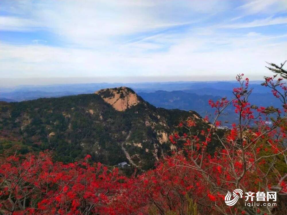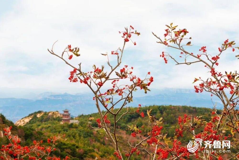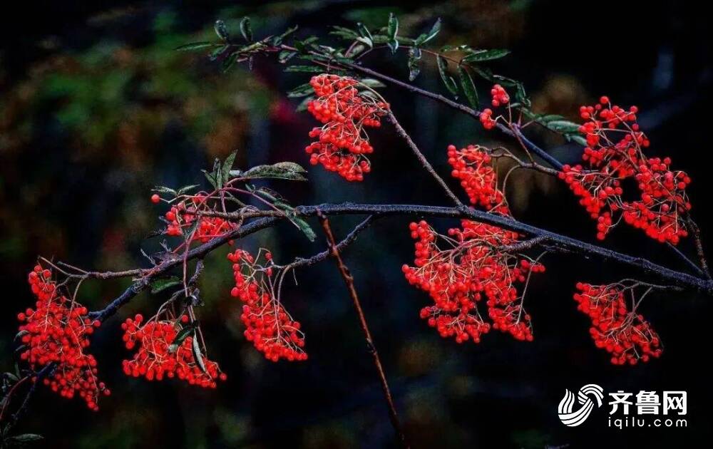 秋高气爽,天高云淡,秋季是花楸树结满红果的季节,累累红果缀在枝头。在岱顶处处可见花楸的身影,那一簇簇火红的花楸,给泰山五彩斑斓的秋色增添了一抹艳丽的红色。