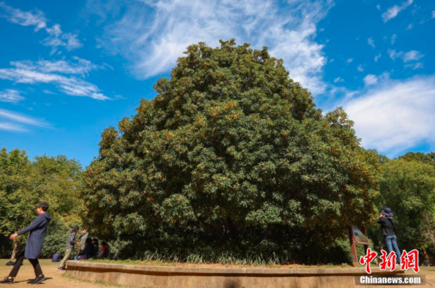 10月20日,南京钟山风景区内被称为“金陵桂花王”的桂花树迎来盛花期。据了解,这棵“金陵桂花王”高6.3米,树干地围1.52米,树冠阔7.8米,树龄达百年以上。泱波 摄