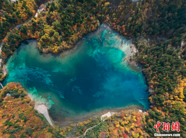 10月23日,深秋时节,四川九寨沟如同油画一般,漫山遍野的红叶绚丽多彩,与清澈见底的湖水交相辉映,美轮美奂,“秋日童话”正上演。 张浪 摄