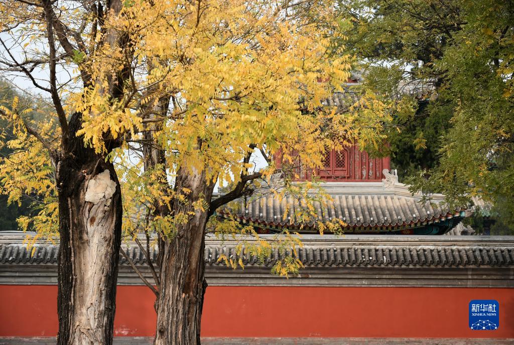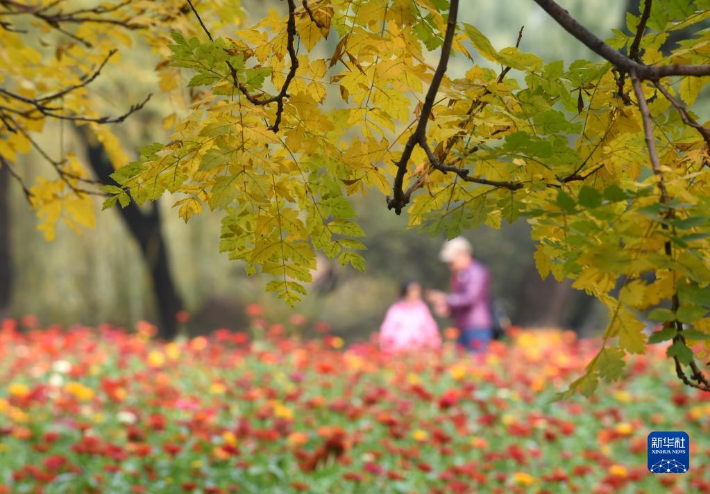 深秋时节,北京圆明园内的银杏、枫树、黄栌等彩叶树种五彩缤纷,构成别具特色的金秋画卷。