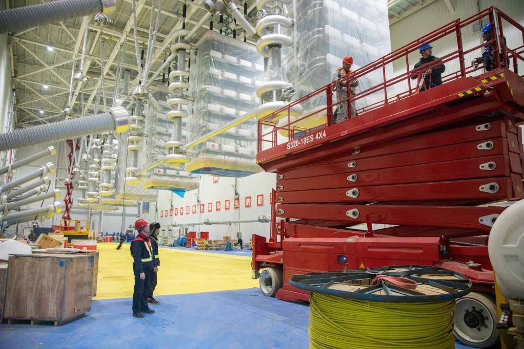 电力工人在布拖换流站的阀厅内作业。新华社发