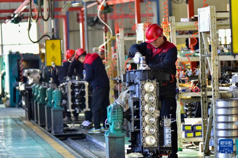 1月2日,工人在山东省青州市何官镇一家发动机制造企业的车间内工作。