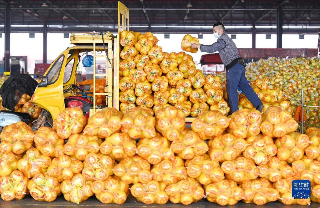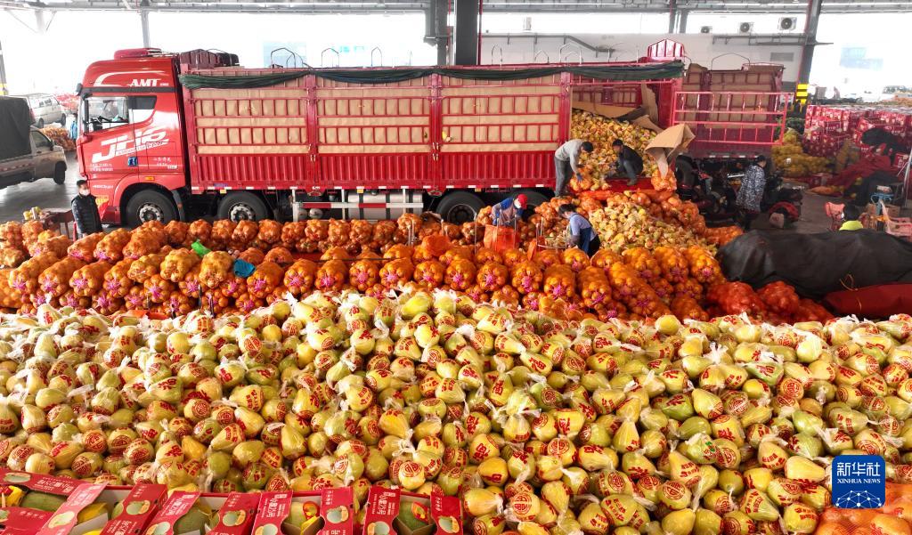 春节临近,广西柳州市各水果批发市场里一派繁忙景象,随处可见工人装卸水果的忙碌身影,商家筹备货源,满足节日市场供应。