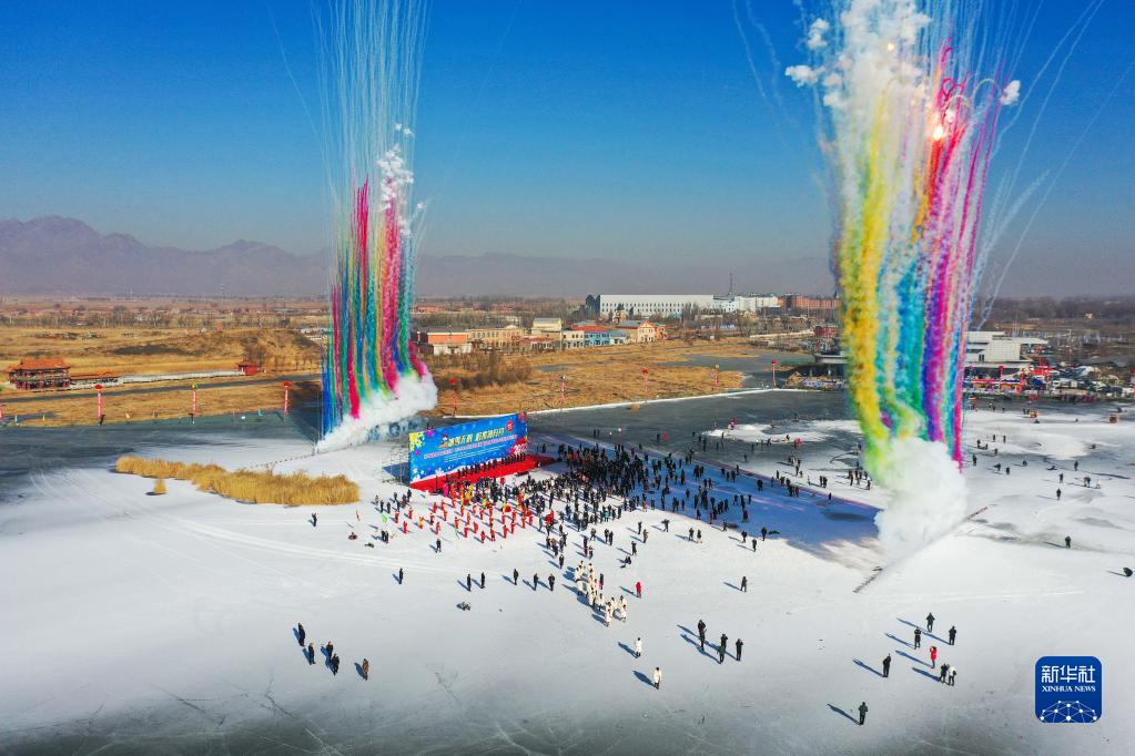 当日,内蒙古呼和浩特市土默特左旗哈素海首届冬捕节暨冰雪旅游季系列活动开幕。