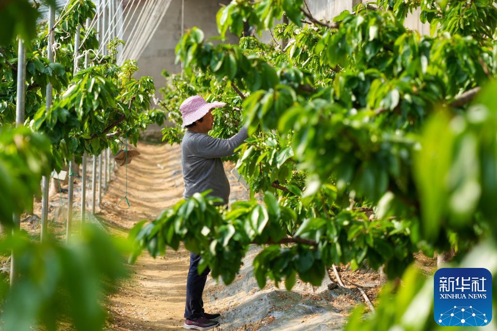 连日来,山东省威海市文登区文登营镇大店村的樱桃进入挂果生长关键期,村民们抢抓农时进行管护,大棚内一派春意盎然景象。
