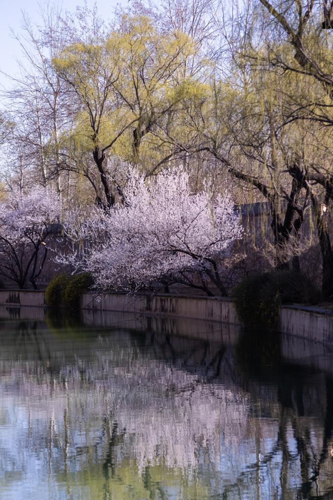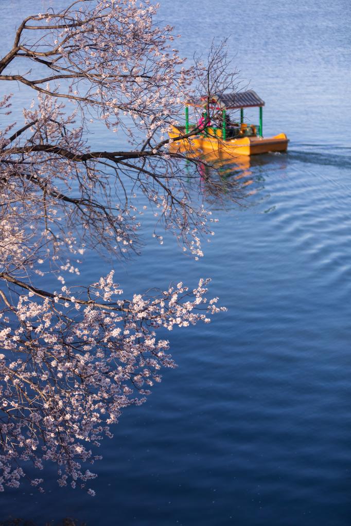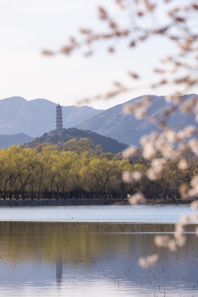 3月18日,北京颐和园春意盎然,景色优美。蓝天白云,春风和煦,春日花朵竞相盛开,争奇斗艳。