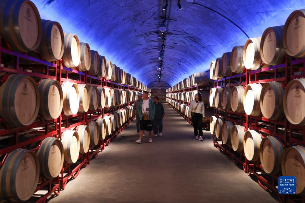 6月12日,游客在张裕酒文化博物馆内参观已有百年历史的地下酒窖。