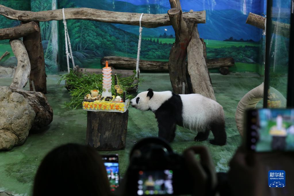 当日,台北市动物园为大陆赠台大熊猫“团团”和“圆圆”的女儿“圆仔”庆祝10周岁生日。