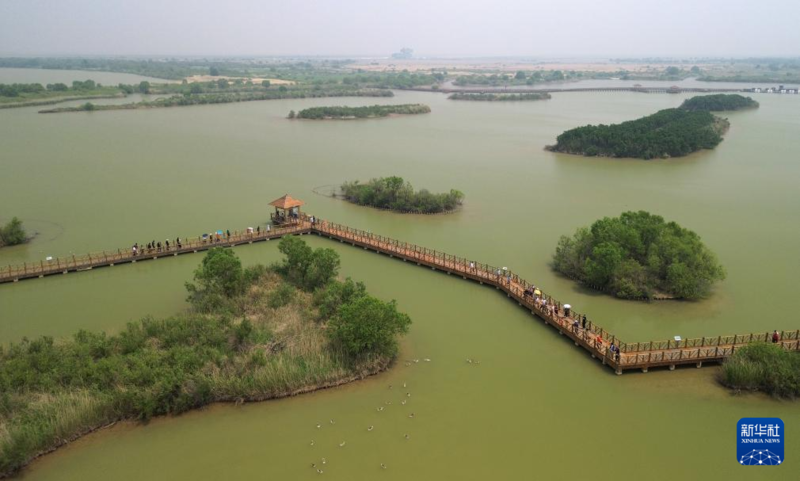 这是黄河三角洲国家级自然保护区内的湿地(5月14日摄,无人机照片)。