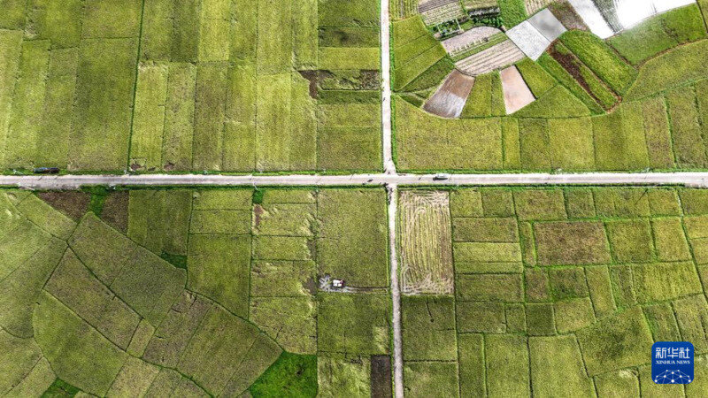 这是7月2日拍摄的广西钦州市康熙岭镇的早稻田(无人机照片)。