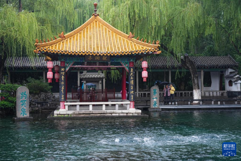 当日是秋分节气,受连日降雨影响,山东省济南市趵突泉泉水喷涌势头强劲,再现“趵突腾空”景象。