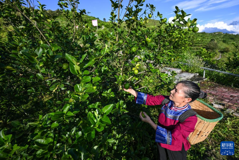 10月15日,村民在望谟县蔗香镇青柠檬基地采摘柠檬。