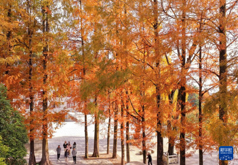 11月19日,游客在湖南省衡阳市南岳衡山风景区赏景游玩(无人机照片)。