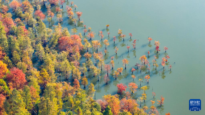 11月20日拍摄的江苏省常熟市尚湖国家城市湿地公园景色(无人机照片)。