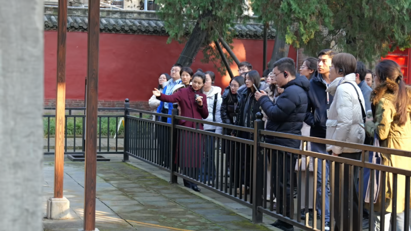初冬时节,山东济宁曲阜孔庙旁的半壁街铺满金色银杏叶,慕名而来的游客络绎不绝。