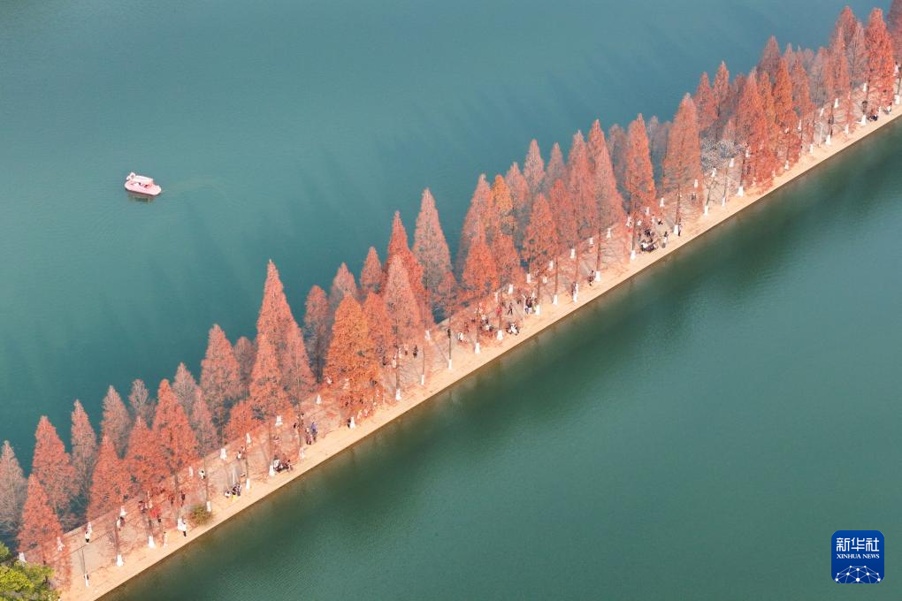 连日来,湖南省长沙市烈士公园的水杉树叶转红,在冬日暖阳的映照下,园内景色如画,吸引不少市民前来游玩打卡。