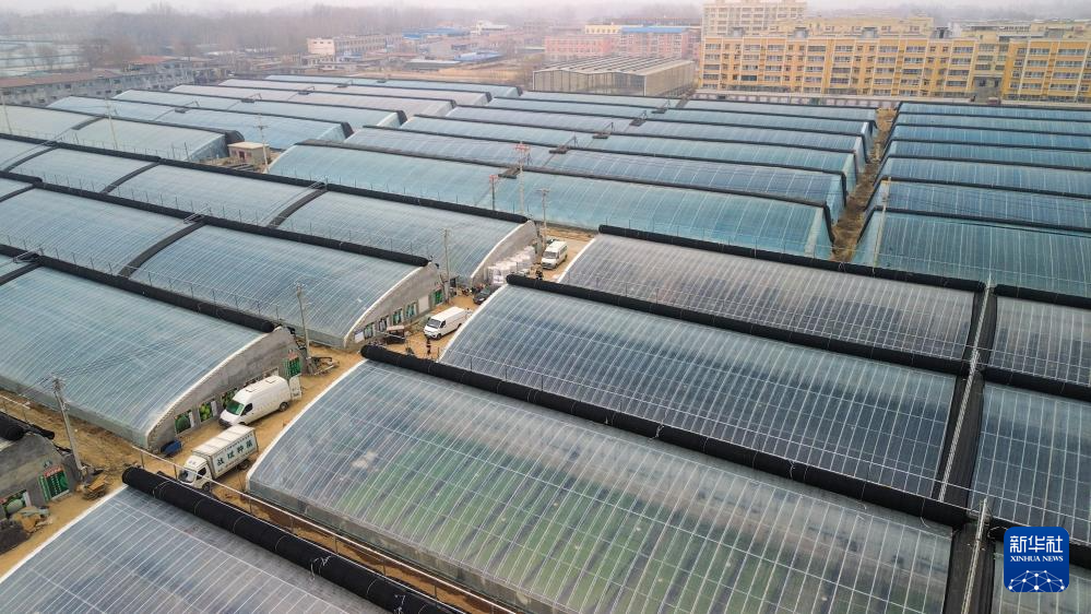 1月28日拍摄的莘县燕店镇的蔬菜种植大棚(无人机照片)。